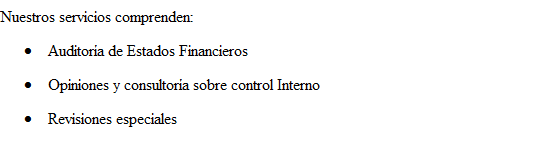 Nuestros servicios de auditoría utilizan como marco de referencia a las Normas Internacionales de Auditoría, que combinadas con nuestros procedimientos en Control Interno, forman una metodología eficaz. Trabajamos por la transparencia en sus operaciones financieras.